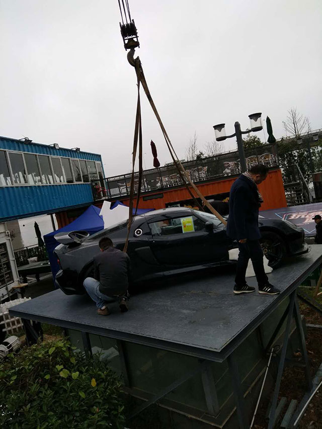 車展會隨車吊吊裝超級跑車